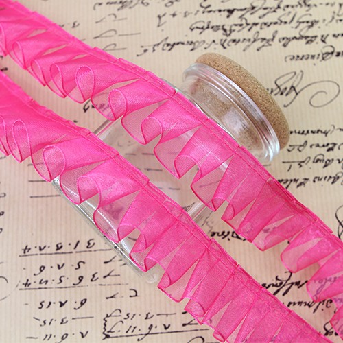 체리핑크/기본오간디(맞주름레이스) > 리본주름레이스