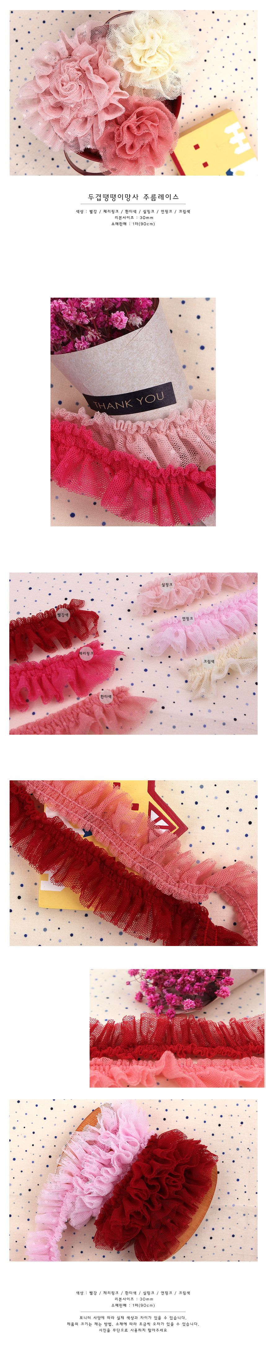 체리핑크/두겹땡땡이망사 주름레이스 > 민자레이스