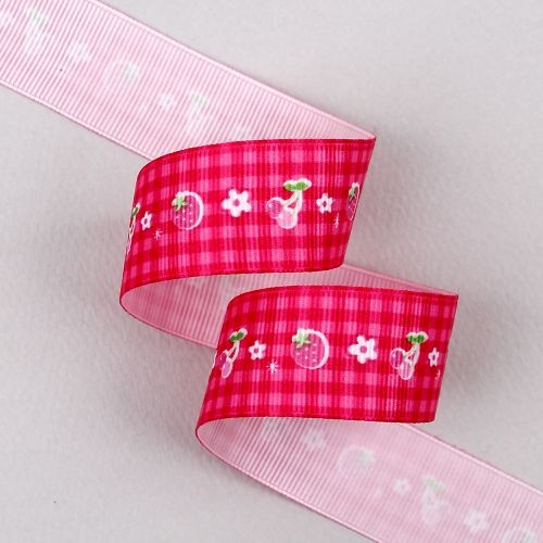 딸기와앵두체크/꽃체리색(골전사프린트) > 꽃프린트 리본