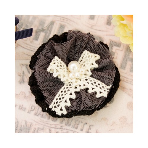 검정/줄줄이진주토숀 원형꽃(원단장식)나3-2 > 원단/쉬폰/코사지장식