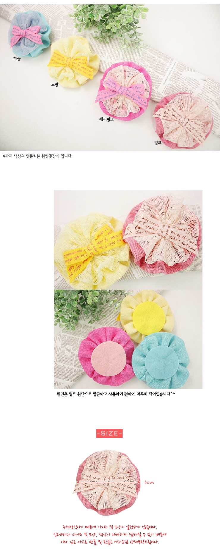 환타/영문리본 원형꽃(원단장식) 요약정보 및 구매