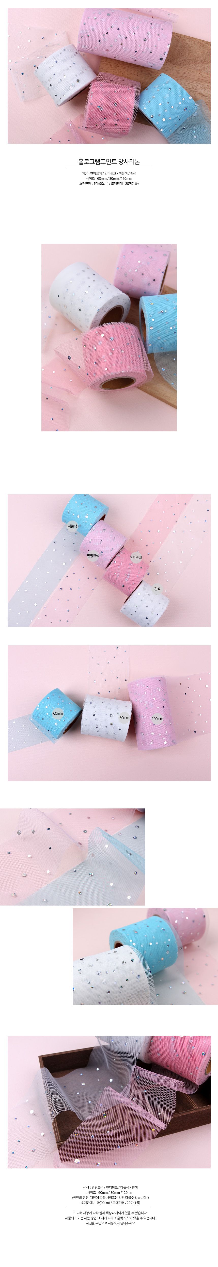 인디핑크/홀로그램땡땡이망사(원단리본) > 망사